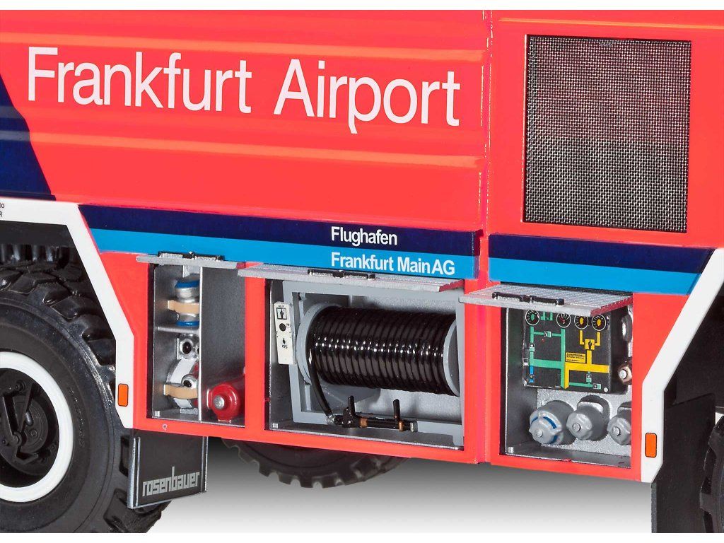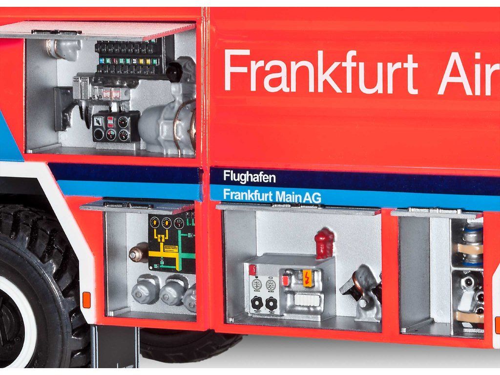 Toto vozidlo nejde k ohnisku požiaru. Prevaľuje sa cez neho. GLFL Simba 8x8 je ťažká váha so špeciálnym poslaním: hasičský automobil pre veľké letiská. V mierke 1:24 môžete ako model vyniesť na ceste cez 45 ton prevádzkovej hmoty - vrátane penového vodného dela a pohyblivých dverí vodiča.