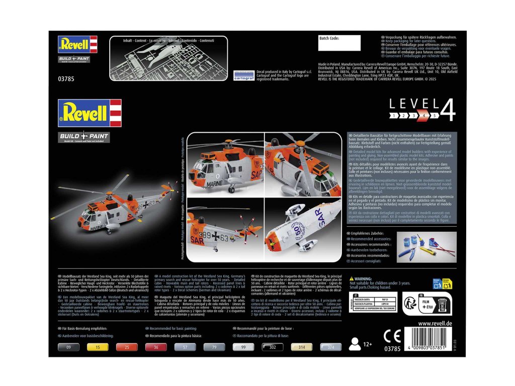 Model vrtuľníka na zlepenie. Veľkosť: 1:72, priemer rotora: 26,3 cm. Balenie obsahuje: 132 dielikov na zlepenie.