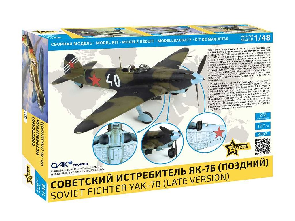 Model Kit letadlo ZVEZDA 4837 - YAK-7 late version (1:48)